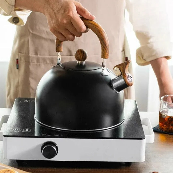 Czajnik z gwizdkiem to akcesorium kuchenne do przygotowywania gorących napojów. Posiada dużą pojemność oraz uniwersalną podstawę, co pozwala używać go na różnych typach kuchenek. Wbudowany gwizdek sygnalizuje osiągnięcie temperatury wrzenia.