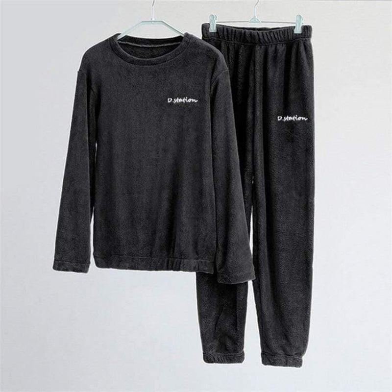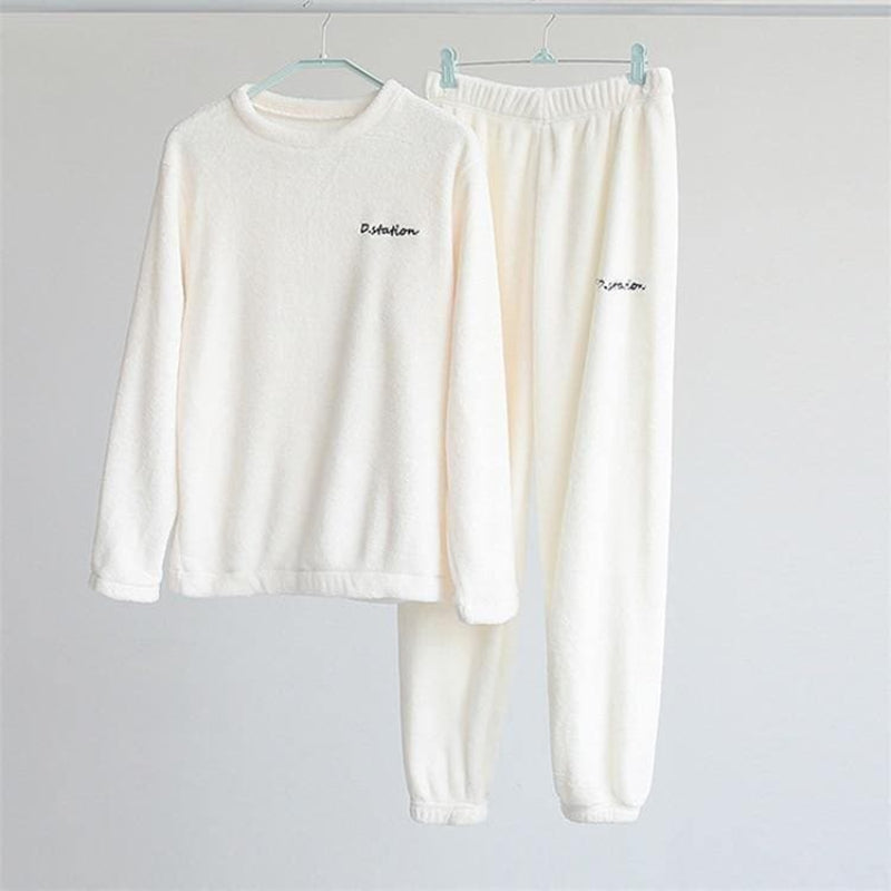 Dwuczęściowa piżama o prostym kroju z nadrukiem rozmieszczonym w standardowy sposób, odpowiednia do użytku domowego. Zestaw jest praktyczny.