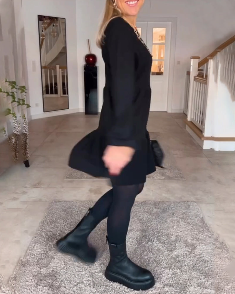 Damska Luźna Sukienka z Długim Rękawem i Okrągłym Dekoltem