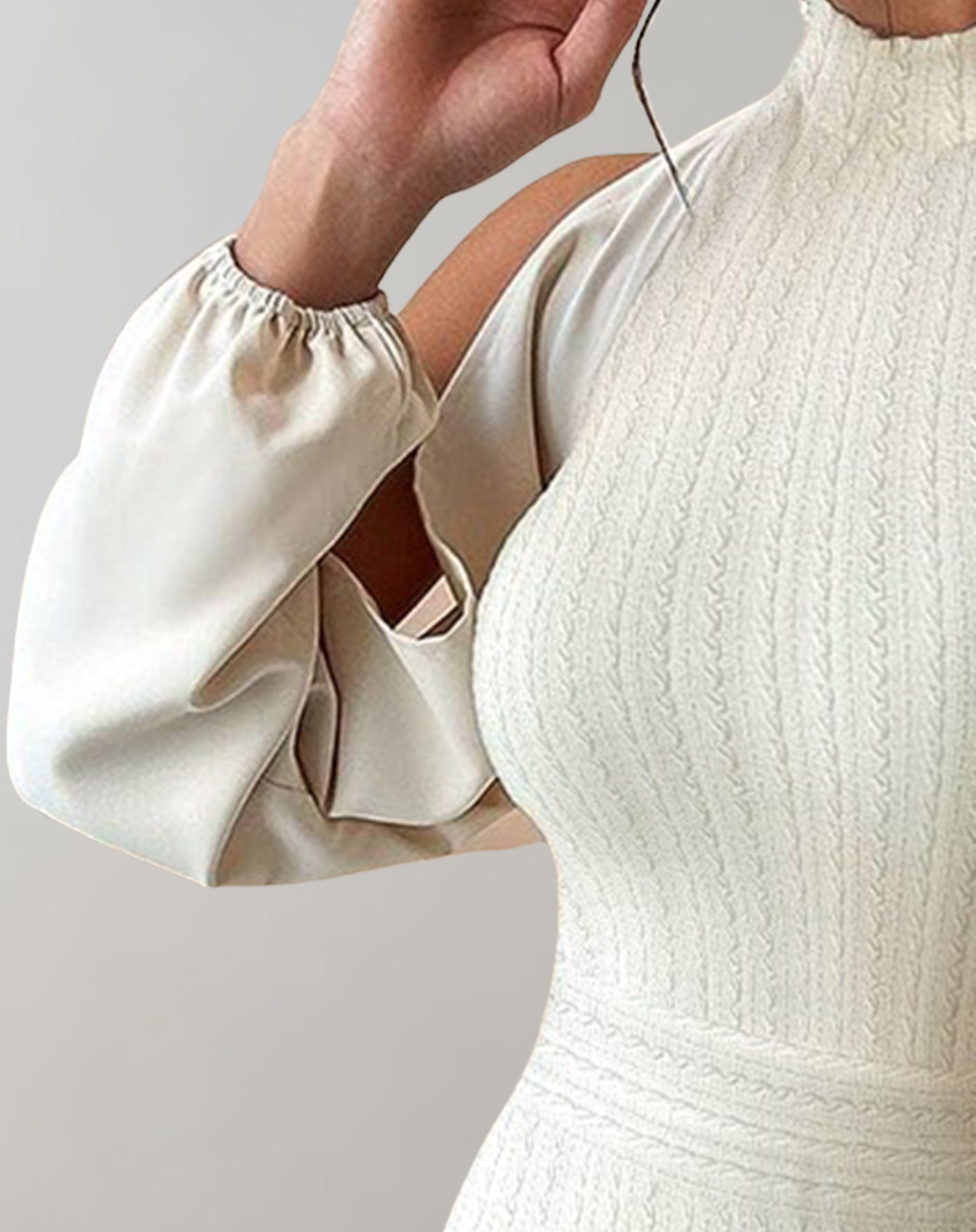 Sukienka dzianinowa z odkrytymi ramionami dla kobiet w stylu patchwork
