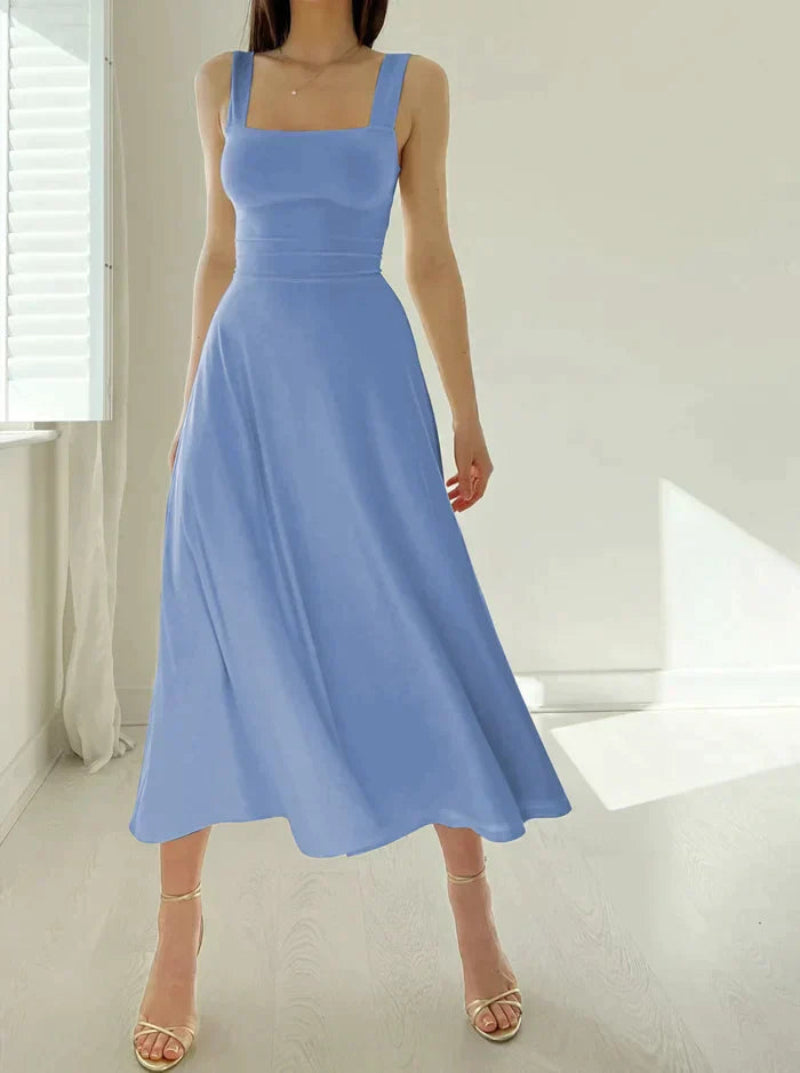 Sukienka midi damska z kwadratowym dekoltem i szerokimi ramiączkami