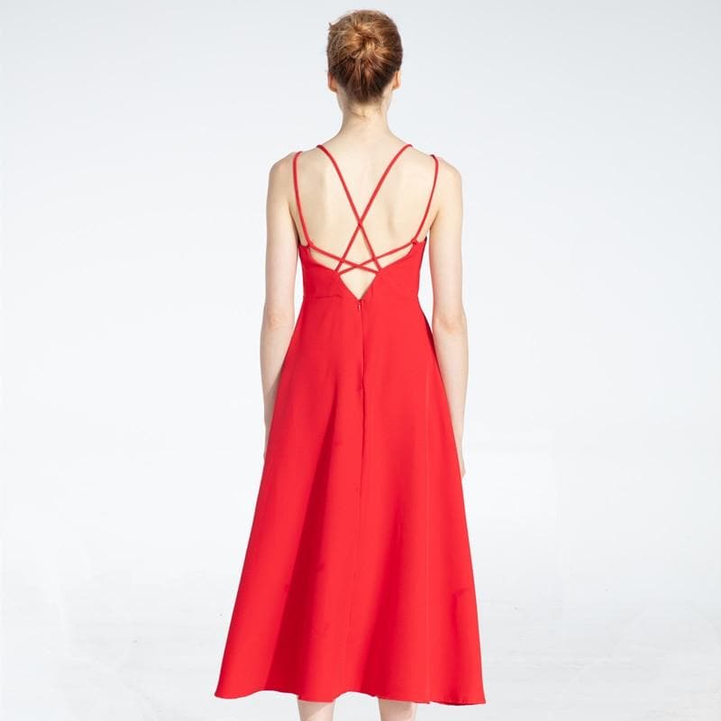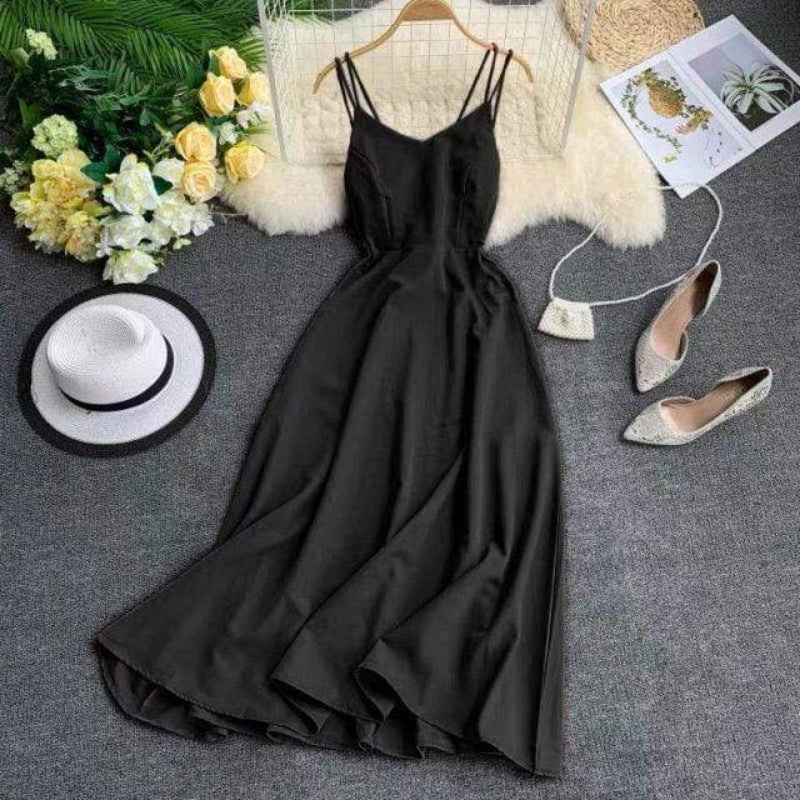 Sukienka midi, długość do połowy łydki, prosty krój, pasująca do różnych stylizacji. Cienkie ramiączka zapewniają lekkość i swobodę noszenia.