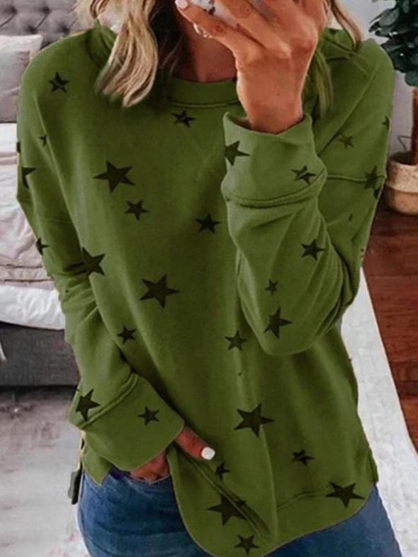 Damski Stylowy Wełniany Sweter z Wzorem Gwiazd i Rundą Hals