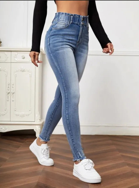 Damskie Spodnie z Wysokim Stanem i Zwężaną Nogawką