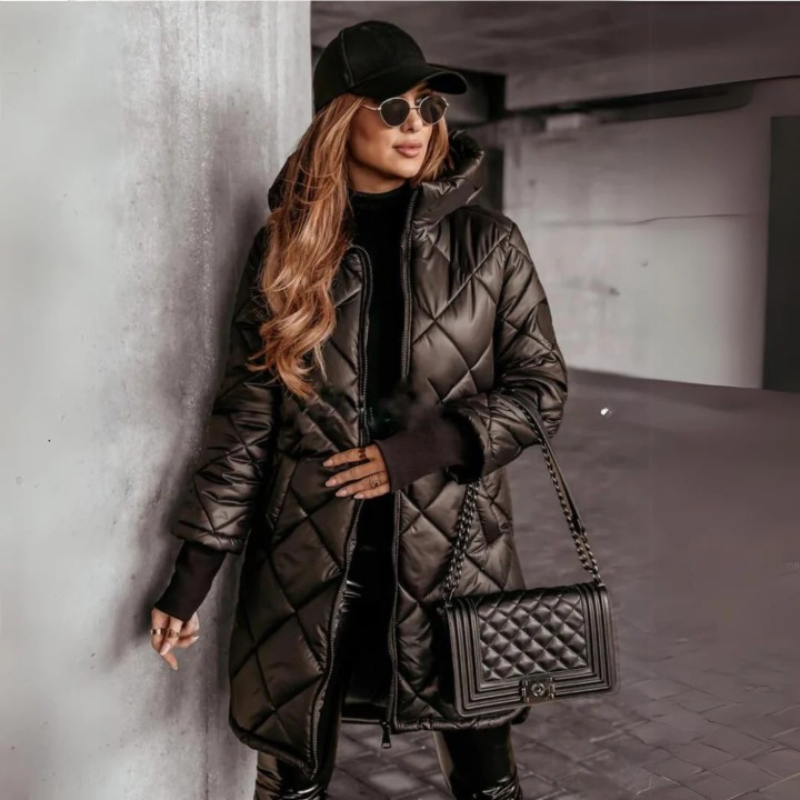 Elegancka pikowana kurtka puchowa z kapturem i zamkiem dla kobiet | Idealna na Jesień/Zimę