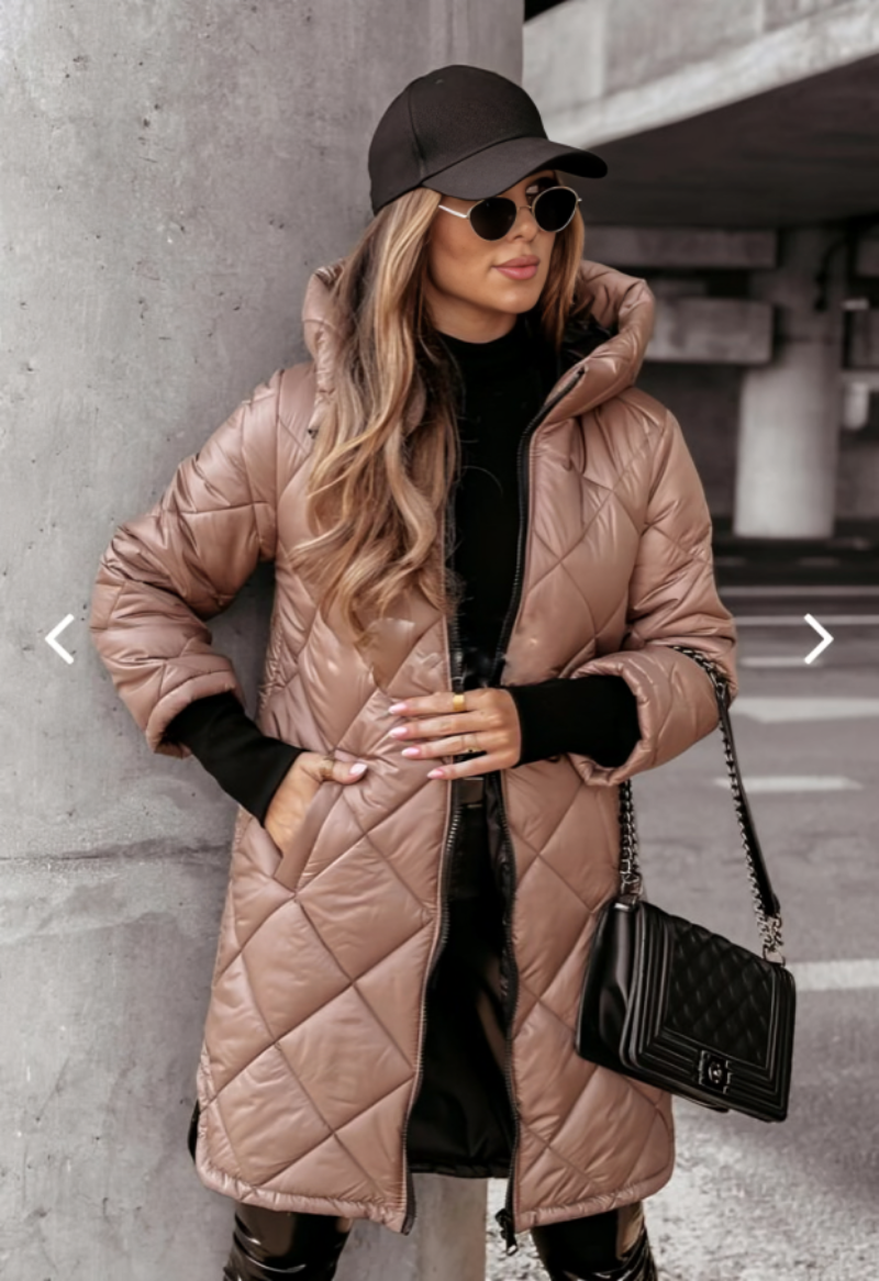 Przywitaj zimę z naszą Elegancką Pikowaną Kurtką Puchową z Kapturem! Zapewnia ciepło i komfort, jednocześnie podkreślając Twój styl. Pikowany wzór nadaje jej wyjątkowy wygląd, a praktyczny kaptur ochroni przed chłodem i wiatrem. Doskonała zarówno na codzienne spacery, jak i eleganckie wyjścia – to must-have w Twojej zimowej garderobie!