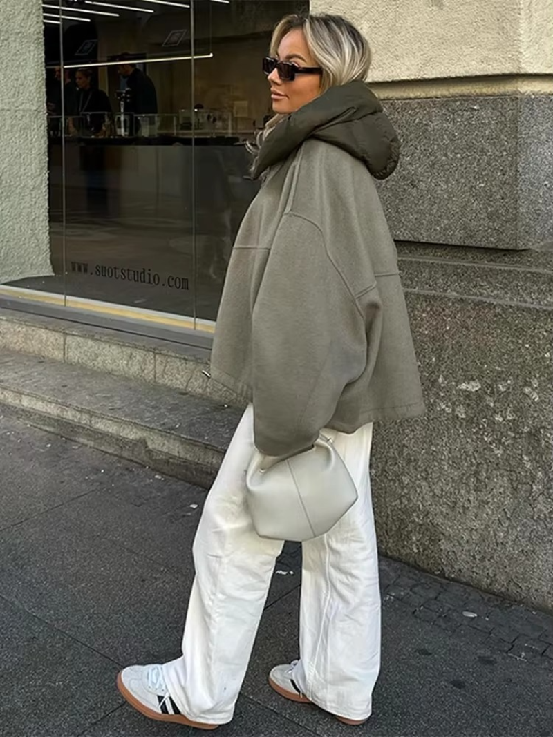 Elegancka Wełniana Kurtka z Kapturem Damski | Idealna na Jesień/Zimę