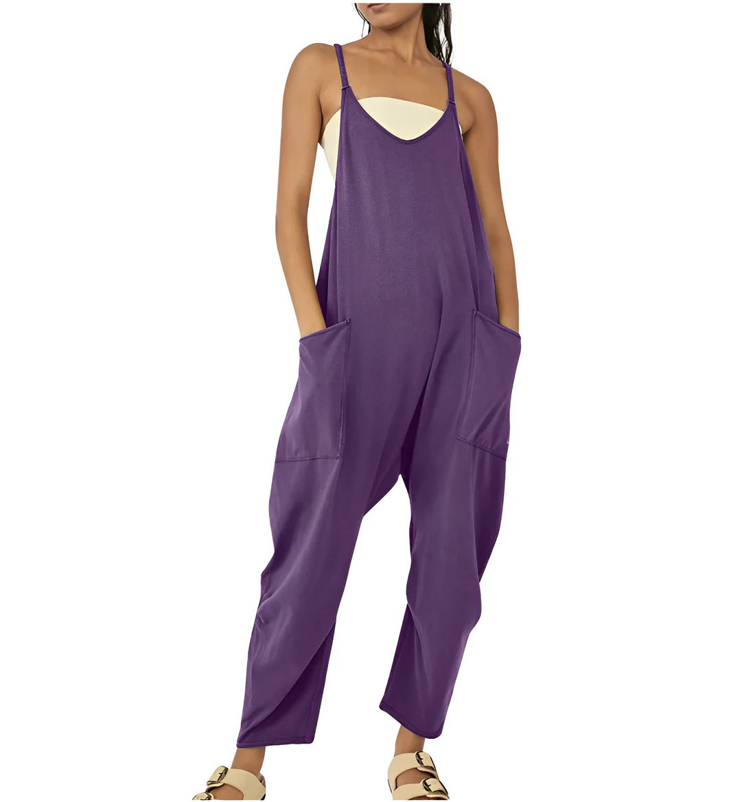 Elegancki Kombinezon Bez Rękawów Z Dekoltem W Serek I Kieszeniami Dla Damski | Idealny na Wiosnę/Lato