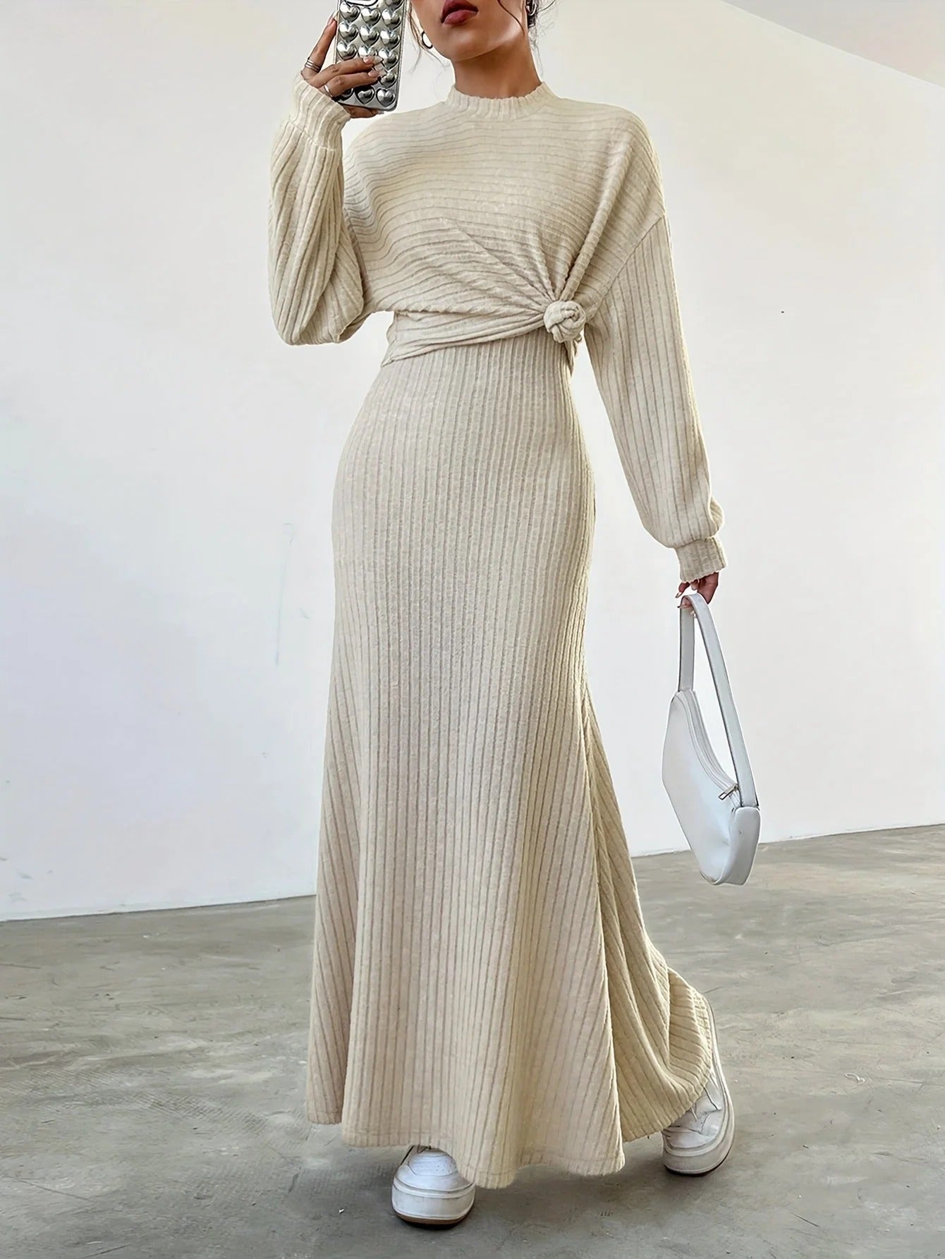 Klasyczny komplet dresowy z długim rękawem i długą spódnicą to doskonały wybór na wiosnę i lato. Zapewnia komfort i swobodę ruchu, a jego prosty, elegancki design sprawia, że świetnie sprawdzi się zarówno na spotkania towarzyskie, jak i na leniwe dni w domu.