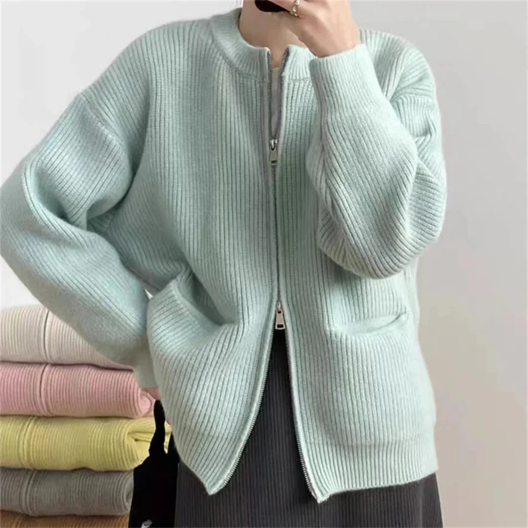 Klasyczny Luźny Rozpinany Kardigan Dzianinowy Z Kieszenią Damski | Idealny na co dzień