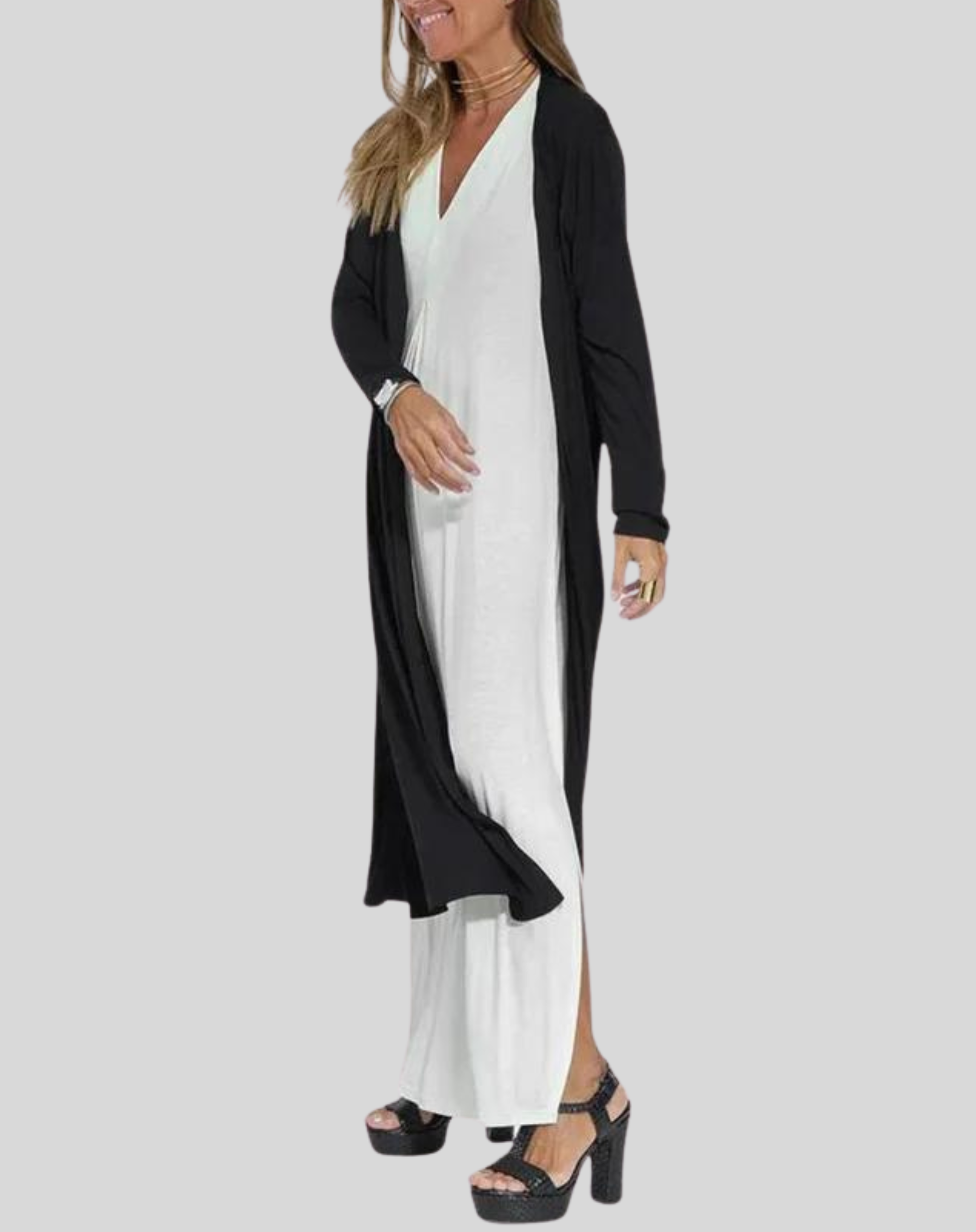 Długa Sukienka z Kardiganem dla Kobiet w Stylu Eleganckim