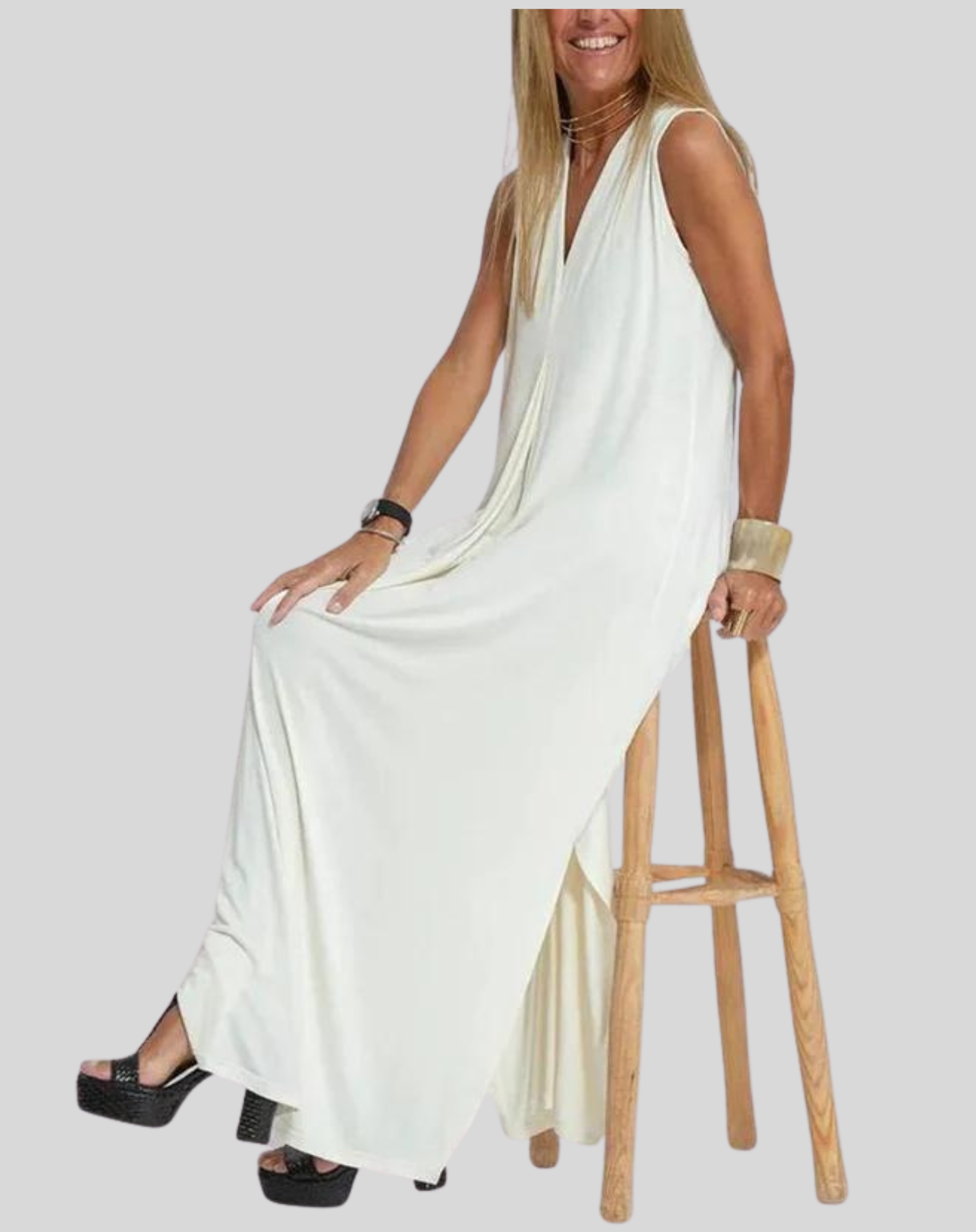 Kobieca Elegancka Długa Sukienka, idealne połączenie stylu i komfortu w formie zestawu składającego się z długiej sukienki i kardiganu. To wszechstronne ubranie, które podkreśla sylwetkę i dodaje pewności siebie. Sukienka wykonana z wysokiej jakości, oddychającego materiału, zapewnia efekt wyszczuplający, akcentując naturalne kształty z gracją i elegancją. Dołączony kardigan dodaje zestawowi odrobinę wyrafinowania i wszechstronności, a jego prosta konstrukcja i lekki materiał są idealne do stylizacji warstwowej, oferując odpowiednią ilość zakrycia na chłodniejsze wieczory lub w klimatyzowanych pomieszczeniach.