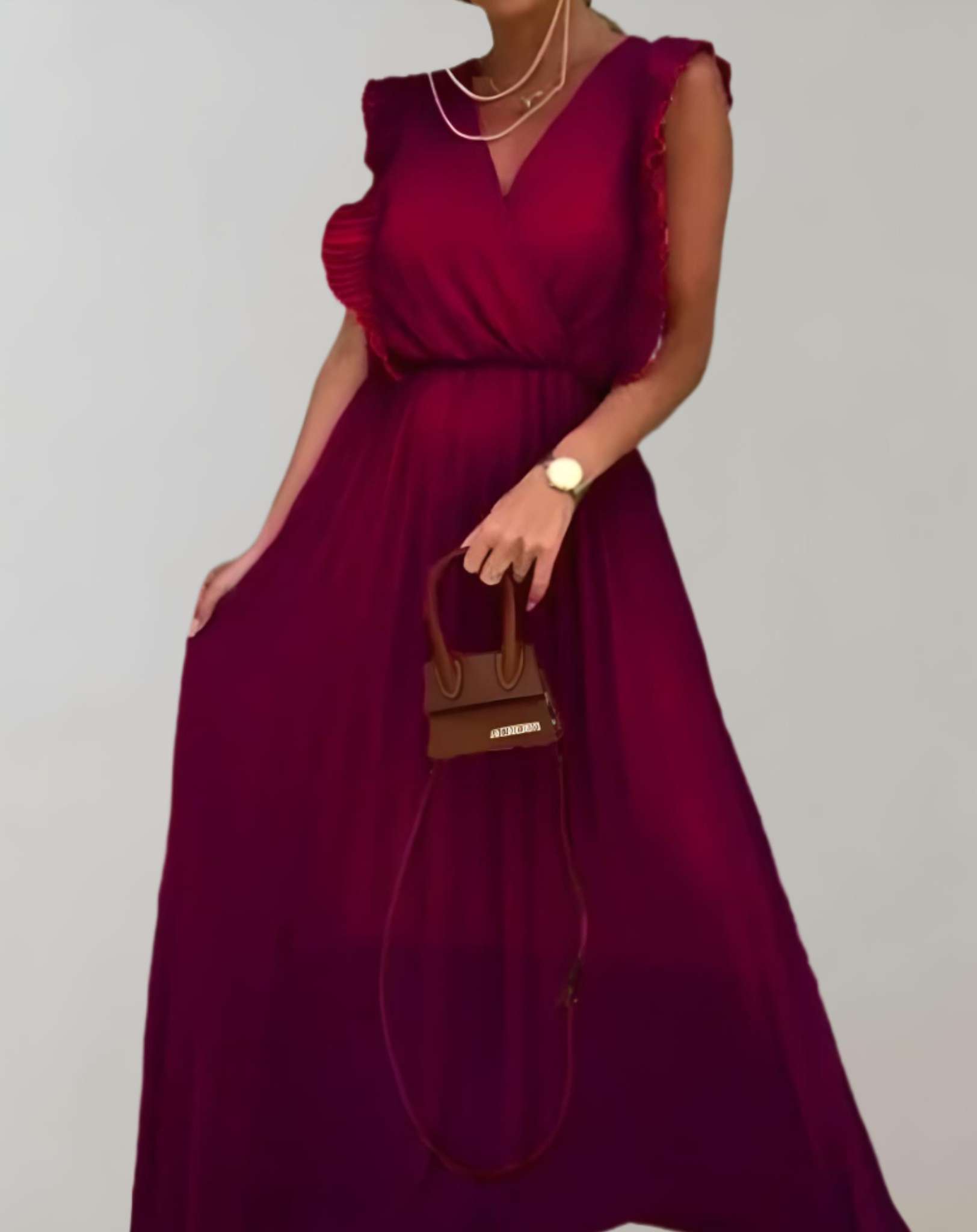 Kobieca Stylowa Sukienka Oddychająca na Wesele z Głębokim Dekoltem
