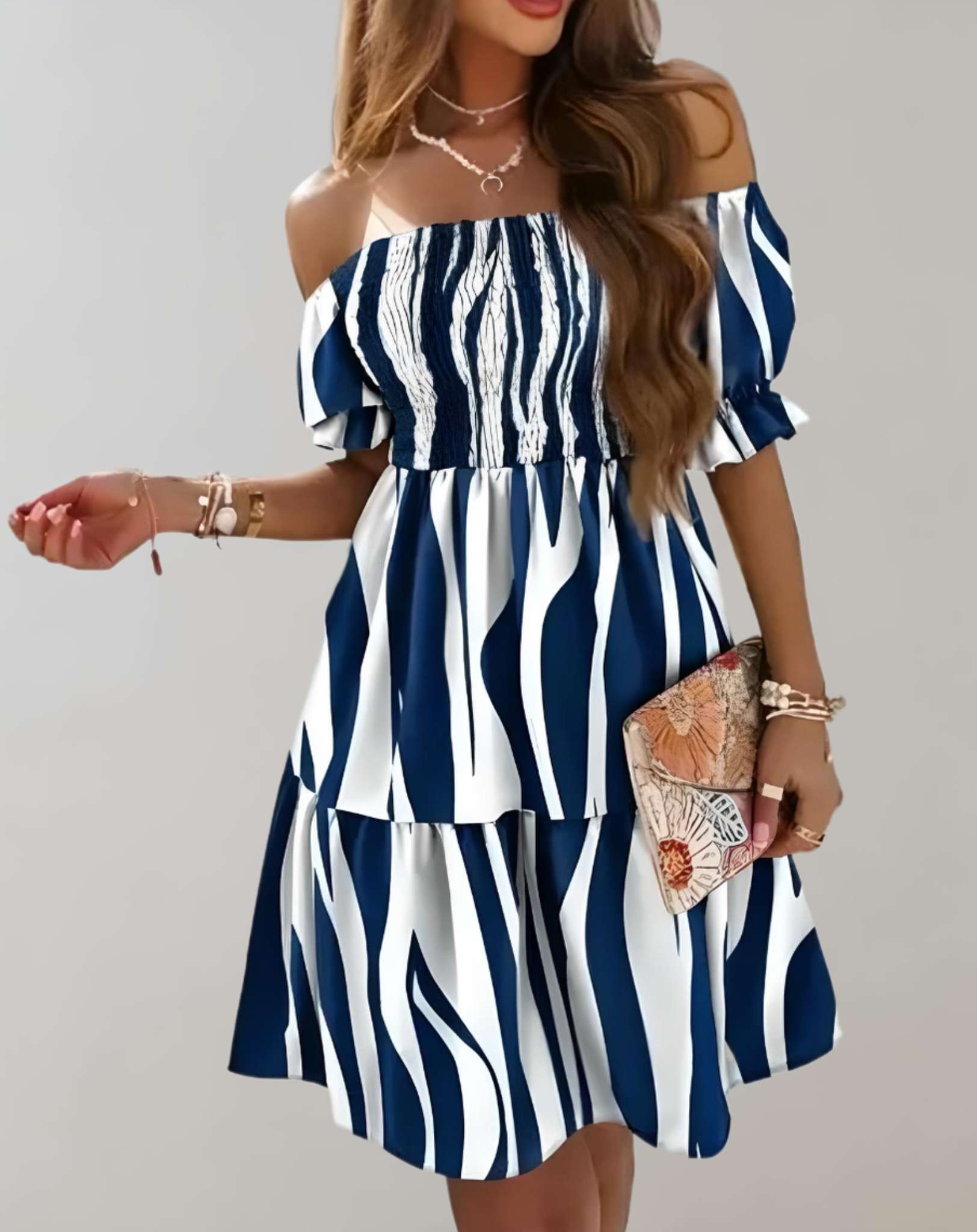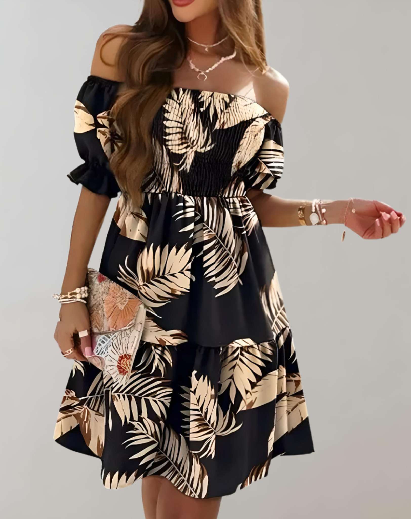 - Styl: Mini, z odkrytymi ramionami