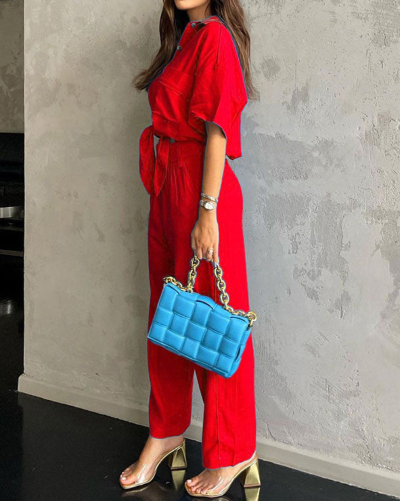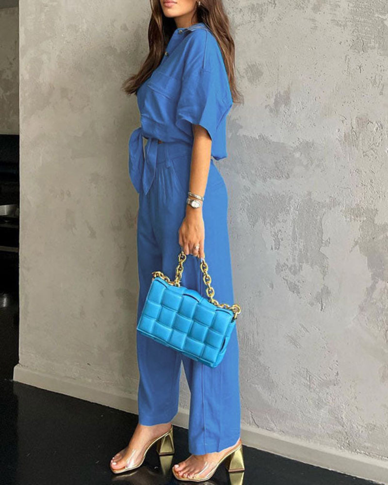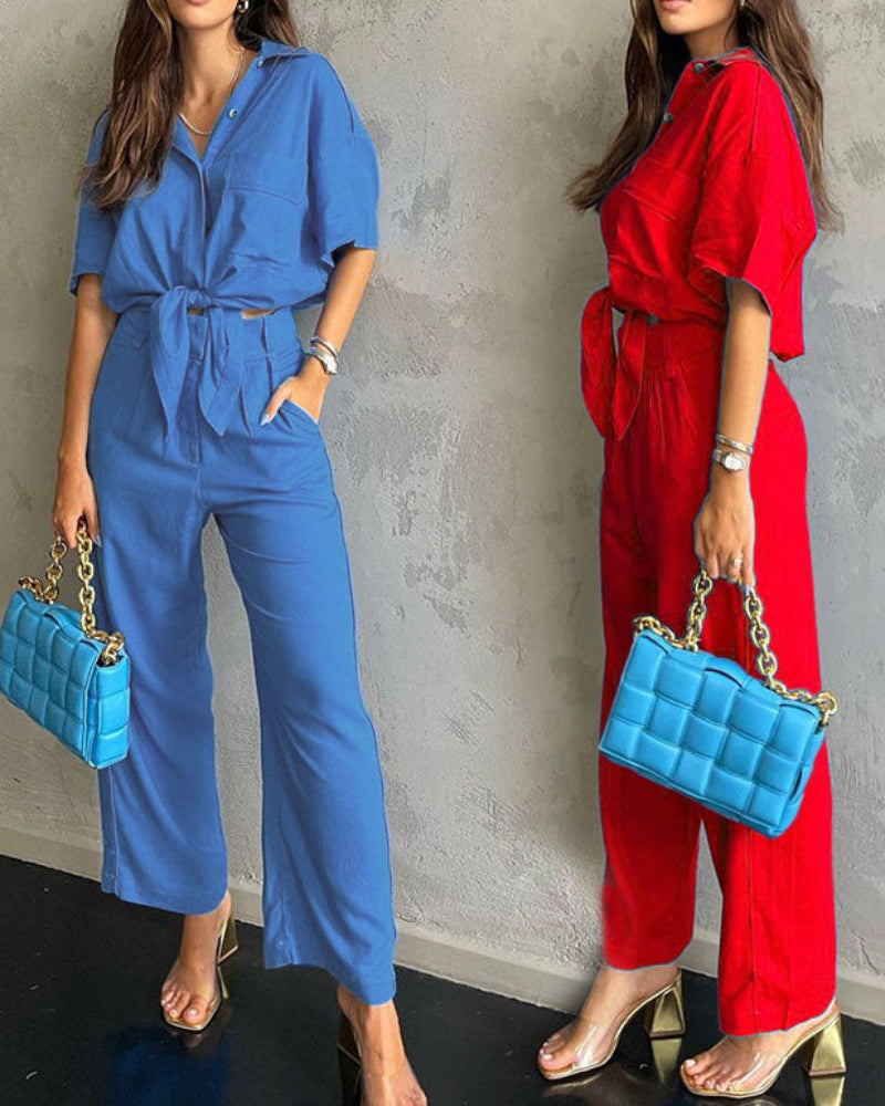 Kobiety Stylowy Bawełniano-Lniany Zestaw z Luźną Bluzką i Szerokimi Spodniami