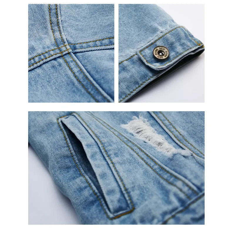 Męska Jeansowa Kurtka z Czterema Kieszeniami