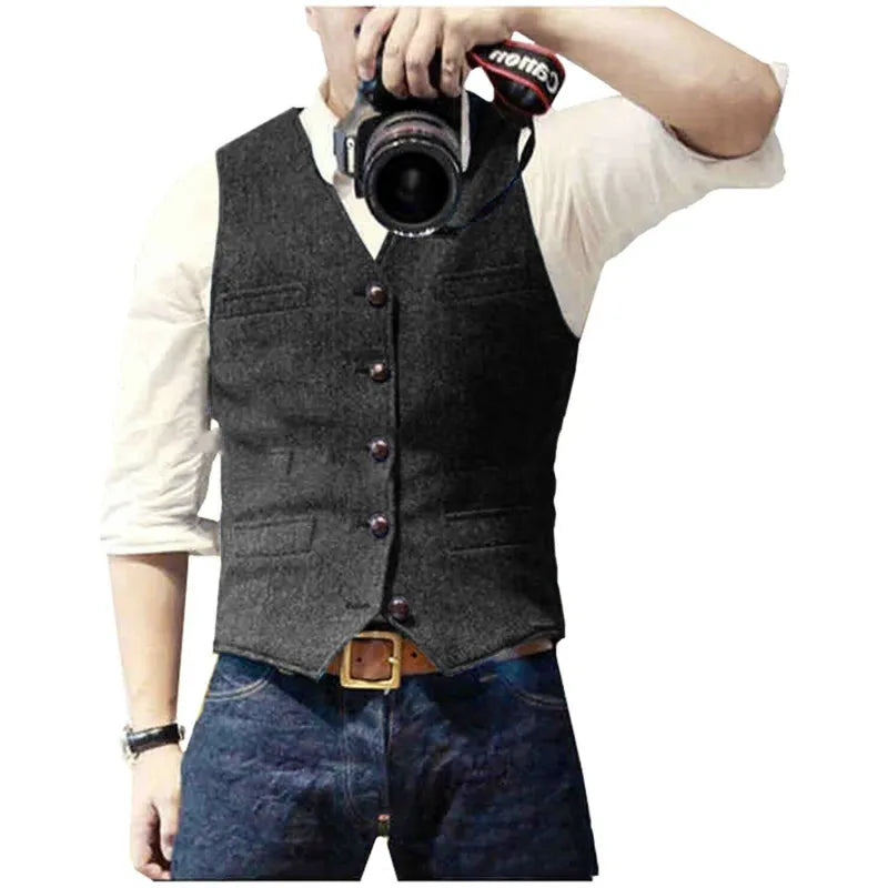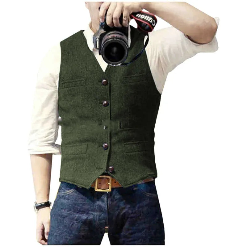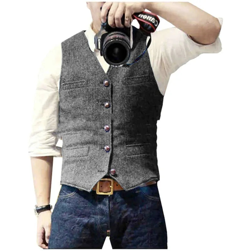 Męska Kamizelka z Zapięciem na Guziki i Kieszeniami