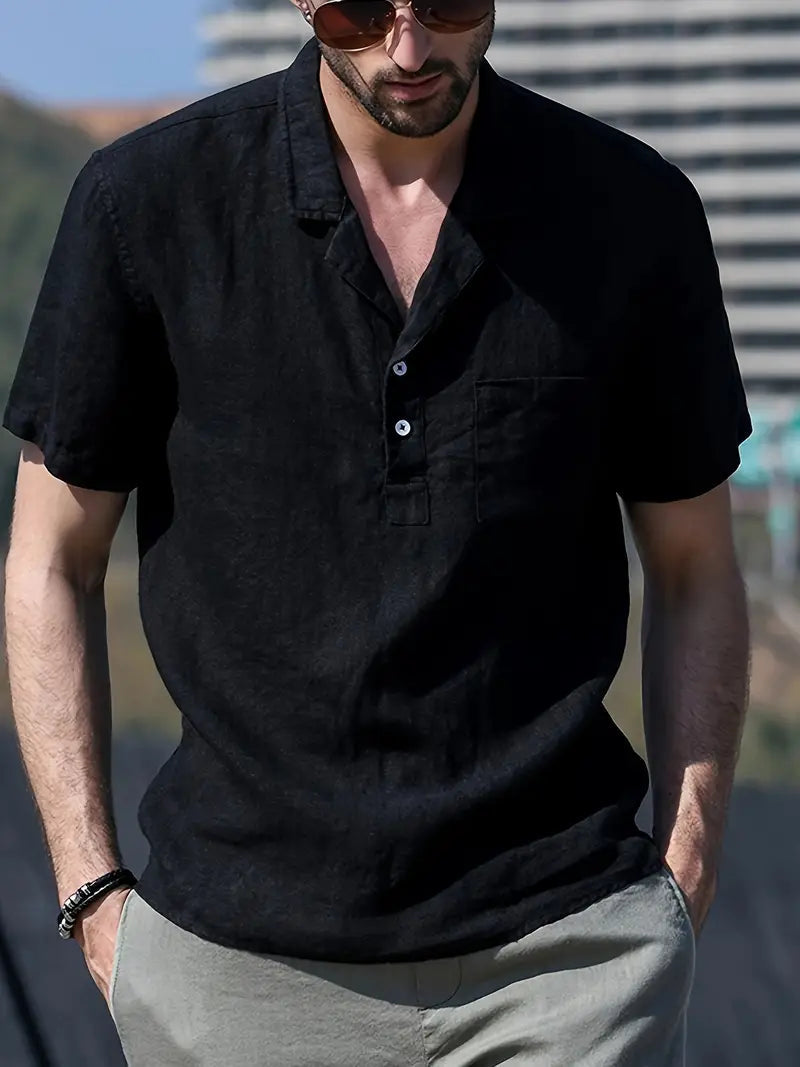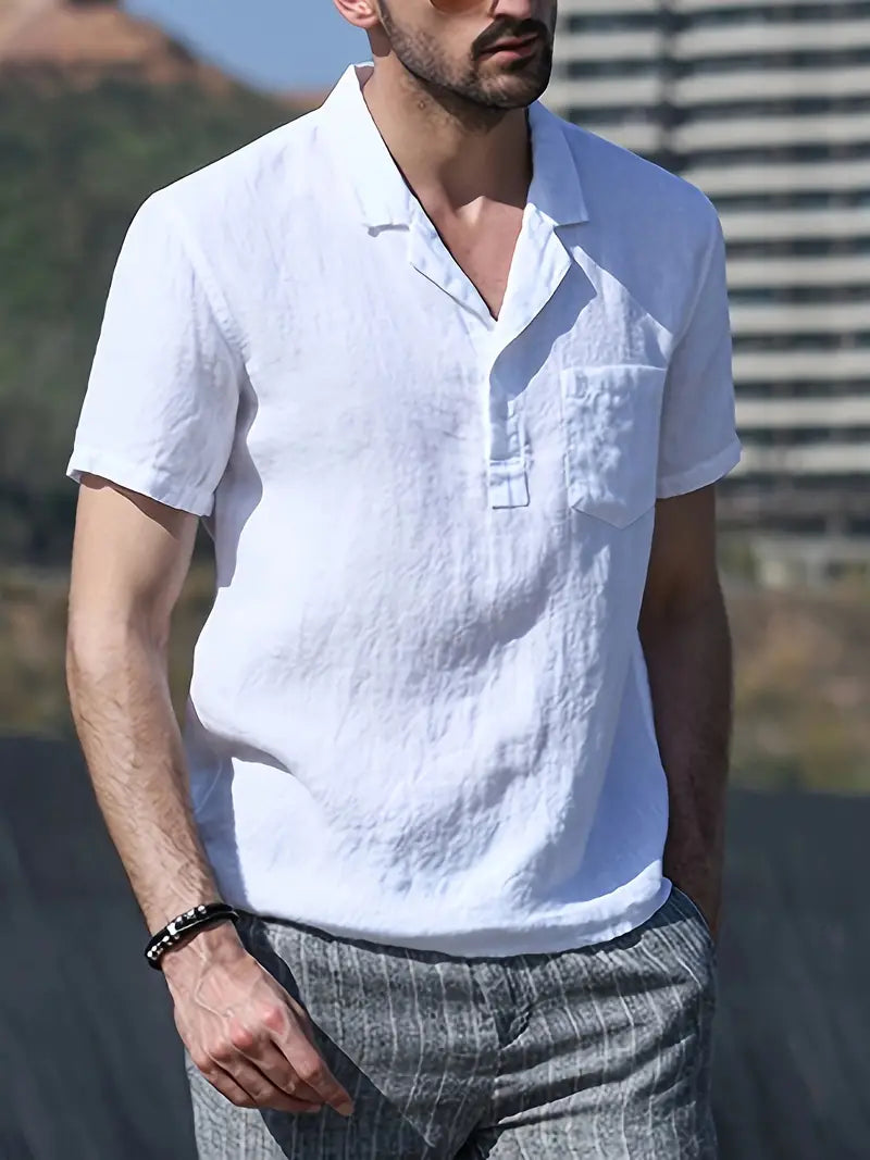 Męska Klasyczna Koszula z Krótkim Rękawem i Kieszenią