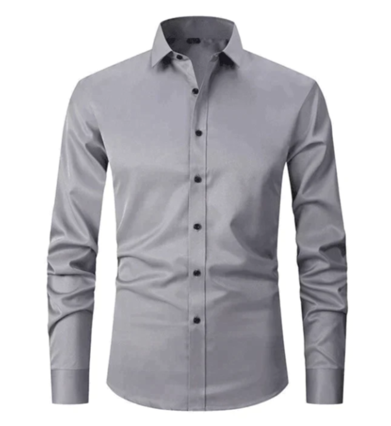 Męska koszula zapinana na guziki, z elastycznym elementem i nowoczesnym krojem, odpowiednia na różne okazje – od noszenia na co dzień po bardziej formalne wyjścia.