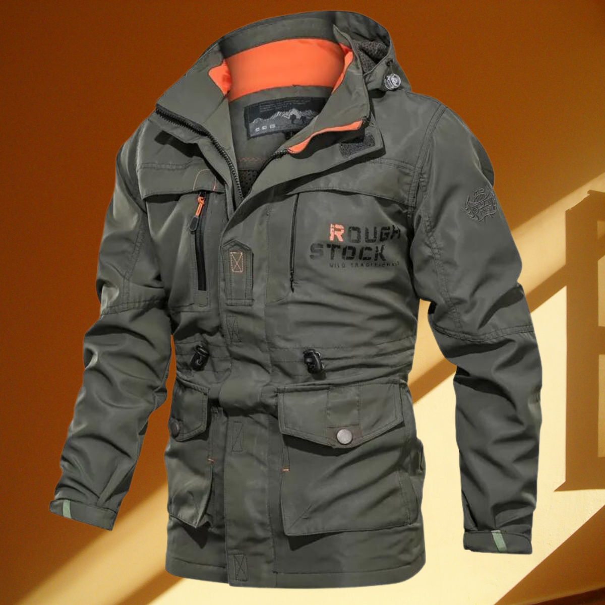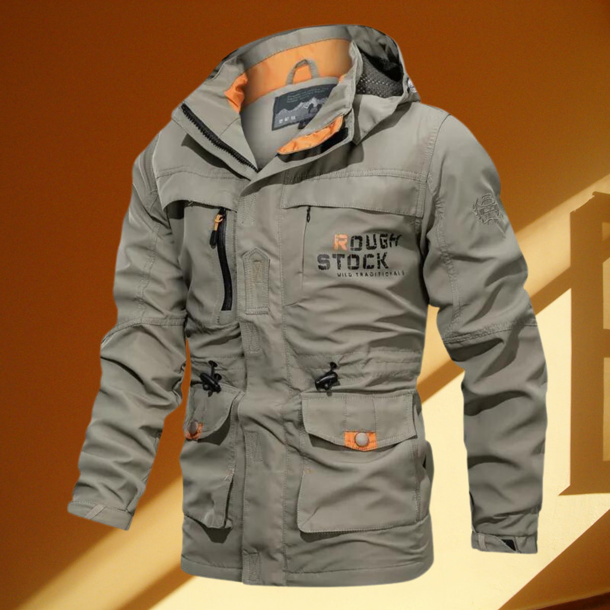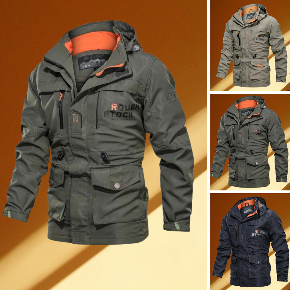 Męska Kurtka z Kapturem i Wieloma Kieszeniami