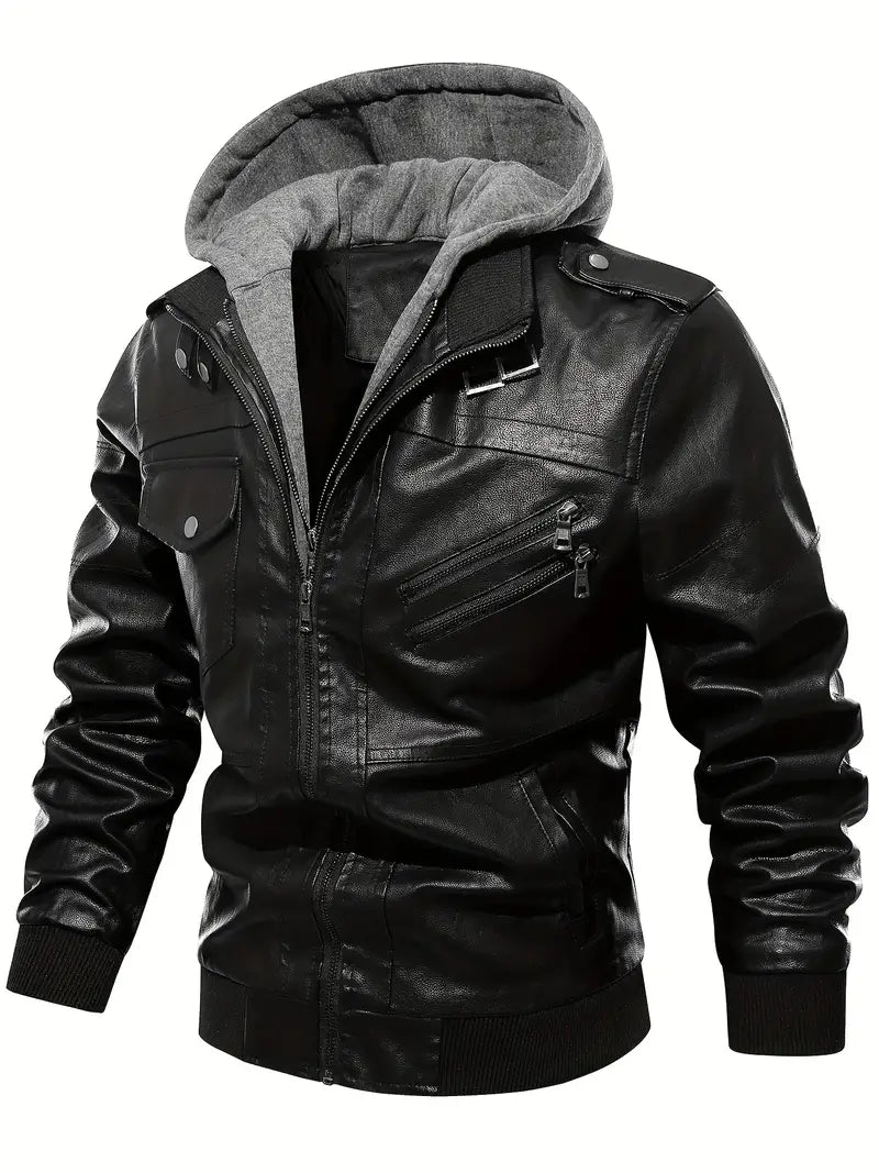 Męska Kurtka Zimowa z Kapturem i Kieszeniami, Dopasowany Krój