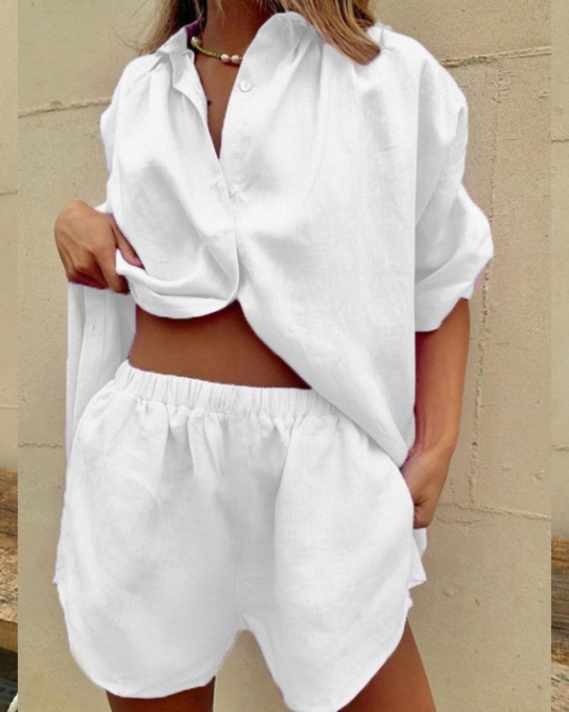 Damski Elegancki Zestaw Koszuli i Szortów z Wysokiej Jakości Materiału