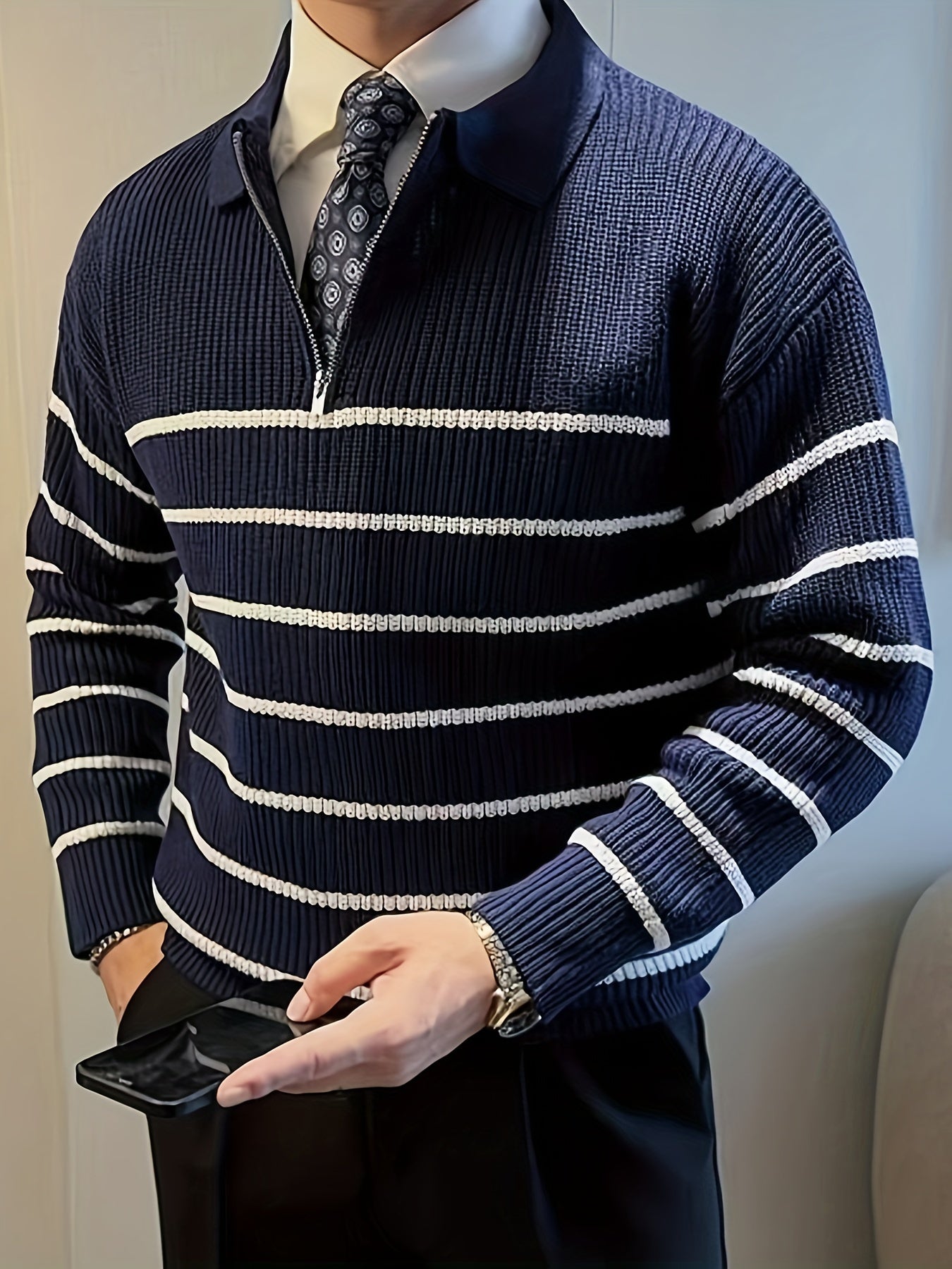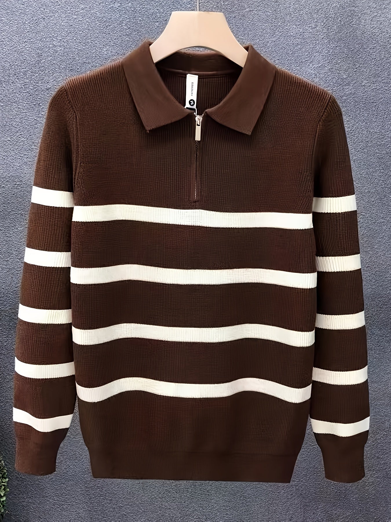 Męski Stylowy Akrylowy Sweter z Półzamkiem w Paski