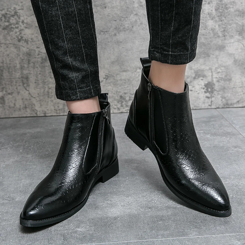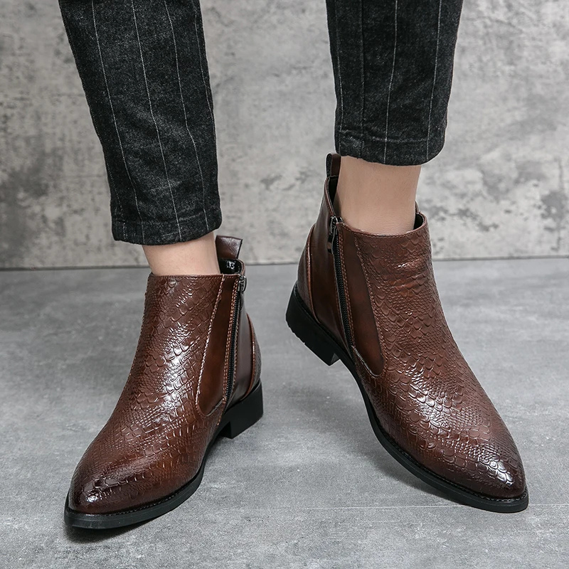 Męskie Eleganckie Skórzane Botki z Zapięciem na Zamek