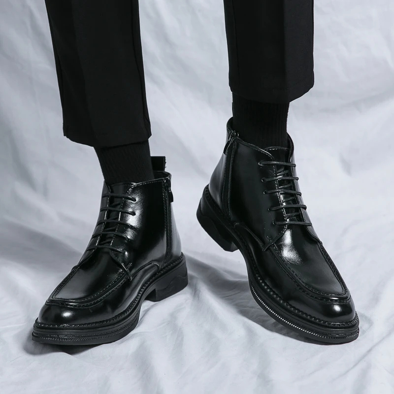Męskie Eleganckie Skórzane Buty z Sznurowaniem i Zamkiem Boczny