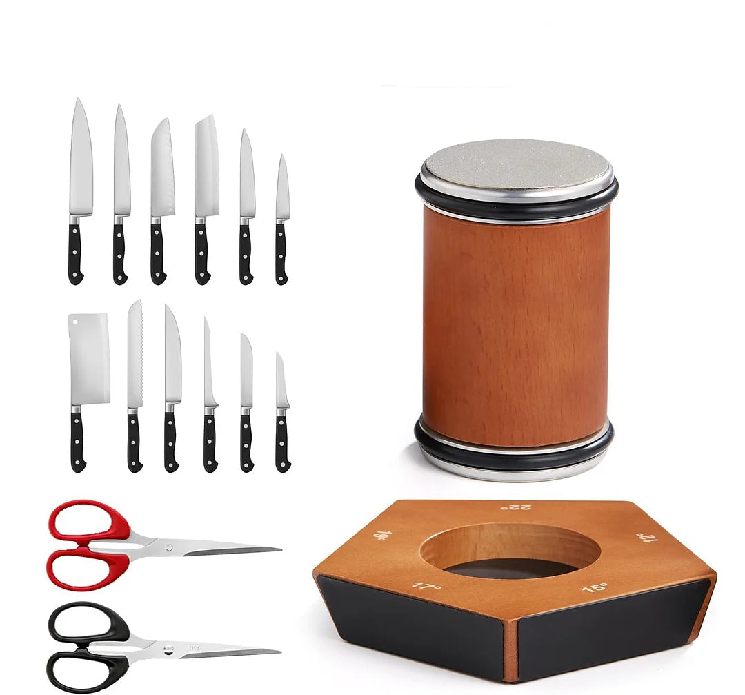 Manualna ostrzałka do noży z ruchomą mechaniką ostrzenia. Zaprojektowana do prowadzonego ostrzenia różnych typów noży kuchennych. Nie wymaga zasilania elektrycznego ani wody, dzięki czemu może być używana w kuchni oraz na zewnątrz.