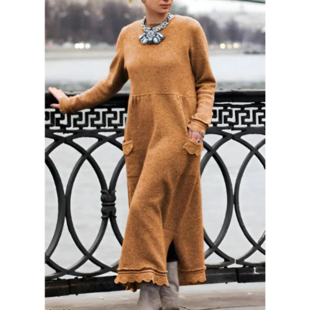 Przytulna Długa Sukienka Maxi z Kieszenią Boczną Damski | Idealne na codzienne dni