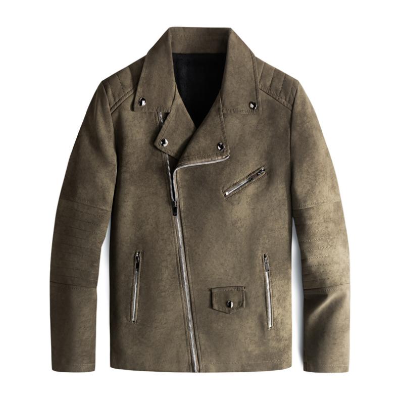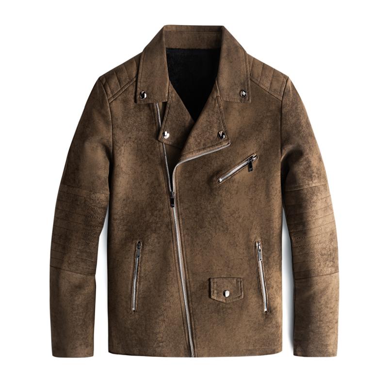 Retro Kurtka z Wegańskiej Skóry z Ukosnym Zamkiem Męski | Idealna na Jesień/Zimę