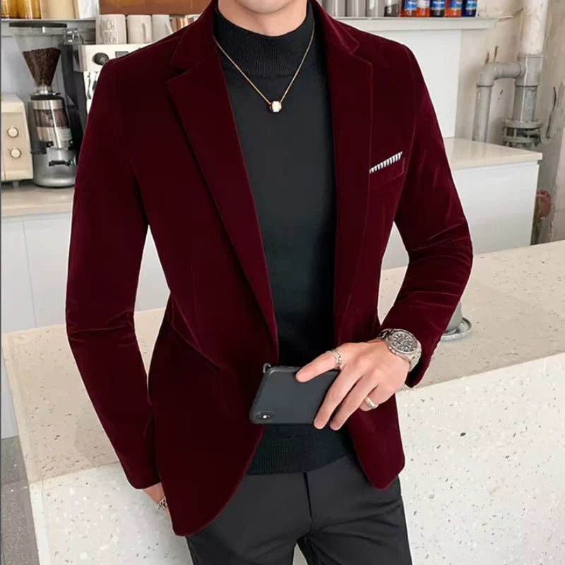 Casualowa Aksamitna Marynarka Z Jednym Guzikiem | Dla każdej pory roku