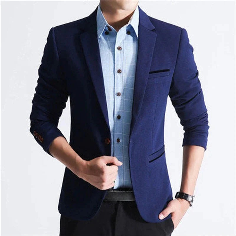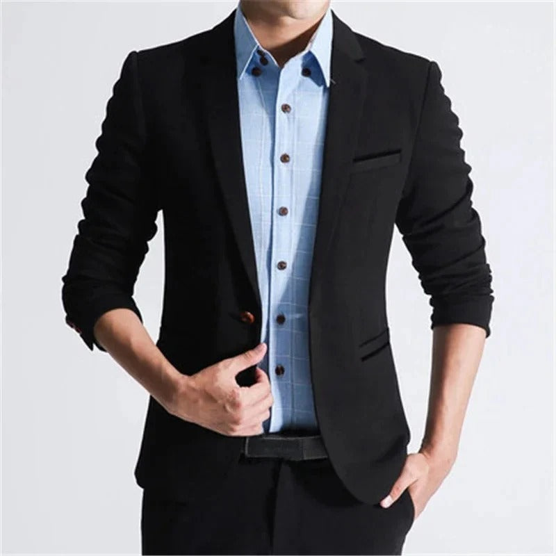 Smukły Fit Marynarka Z Jednym Guzikiem I Kieszeniami Męski | Idealna na Wszystkie Sezony
